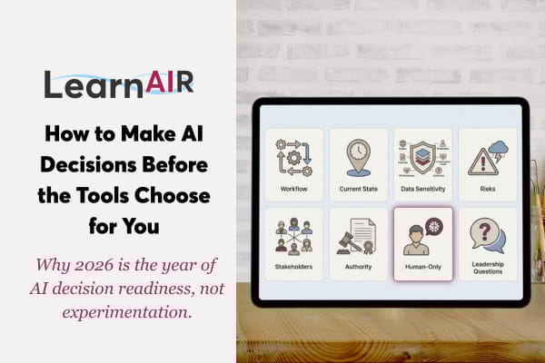LearnAIR shifts from literacy to enablement, helping organizations gain clarity, reduce AI risk, and drive aligned adoption. Discover practical steps and new AI use cases.